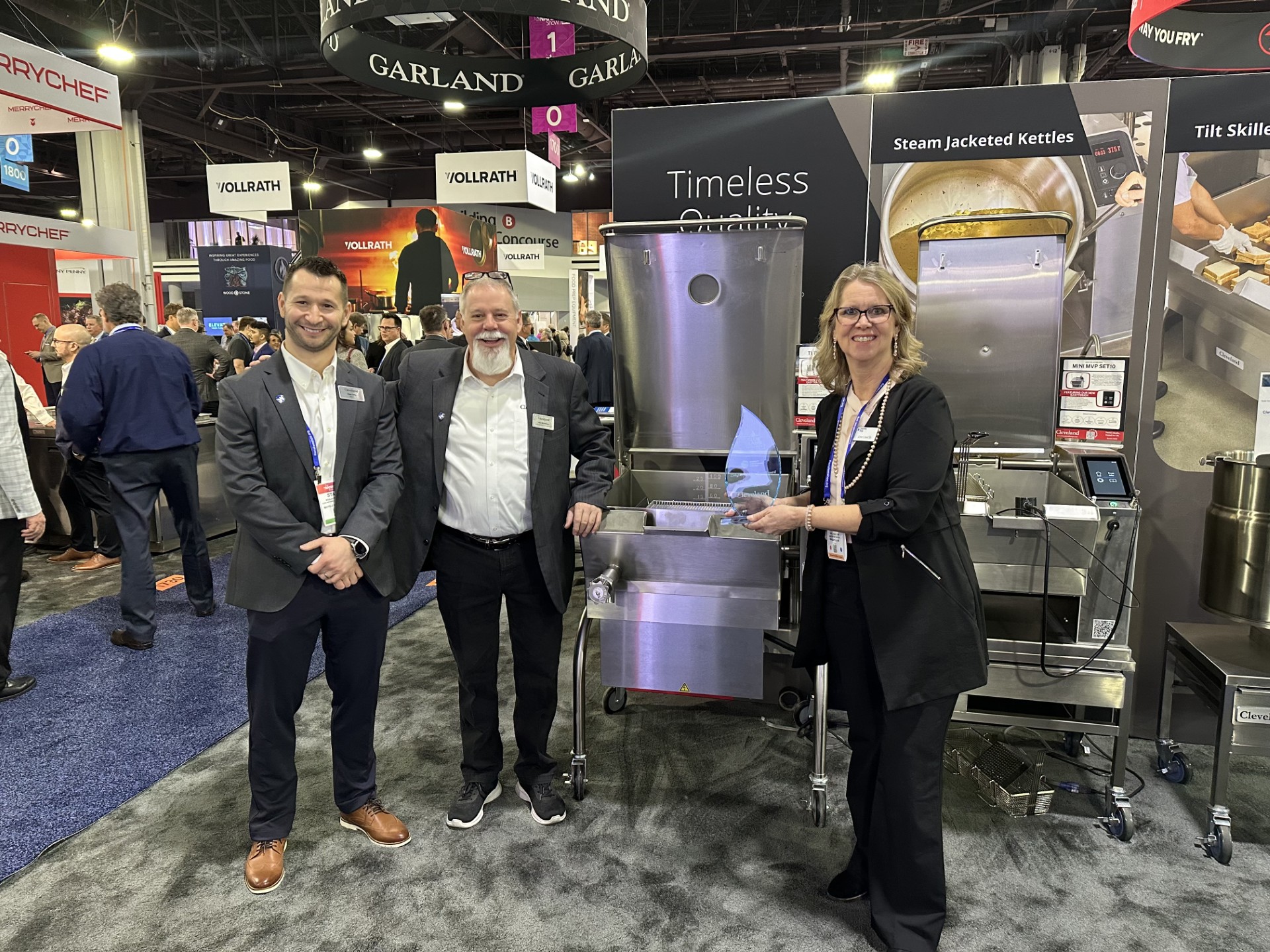 In February 2025, Blue Flame Alliance attended the NAFEM show in Atlanta, GA. At the show, Cleveland’s SGL 40T1Tilting Skillet (SGL 30T1) Tilting Skillet was presented with the 2025 Blue Flame Product of the Year Award. Our members had a great time learning about food service equipment and supplies and networking with other professionals.